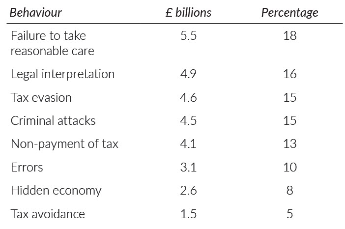 It is interesting to note how the tax gap breaks down between types of behaviour.