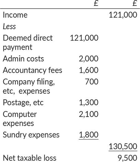 When preparing the corporation tax computation, a deduction will be allowed for the deemed salary payment under CTA 2009, s 139 which states that ‘this section applies for the purpose of calculating the profits of a trade carried on by an intermediary which is treated as making a deemed employment payment in connection with the trade’.