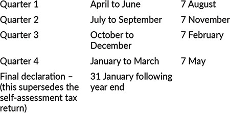Using a 31 March year end with either a 31 March or 5 April year end, quarterly reports would be required by:
